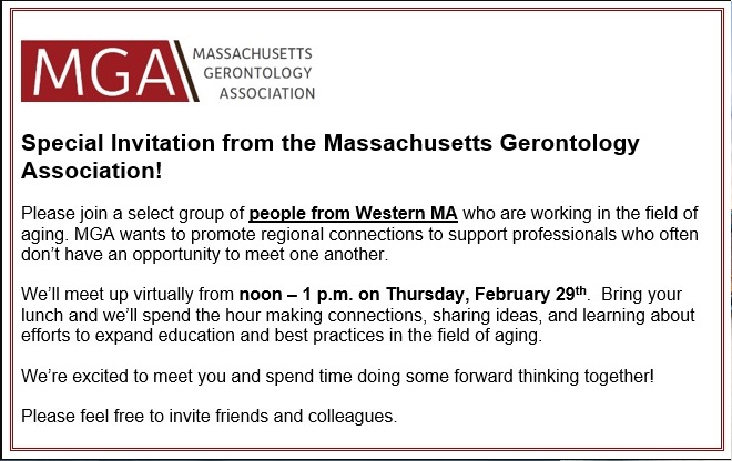 Webster/Western MA MGA Virtual Networking Event – Thursday Feb 29th